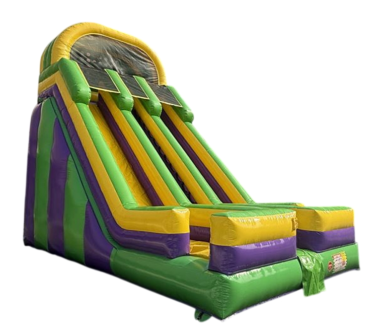 JEU GONFLABLE GLISSADE JAUNE MAUVE VERT - LA BALLOUNERIE